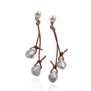 - Material: White Freshwater Pearl, Tan Leather, Sterling Silver Studs