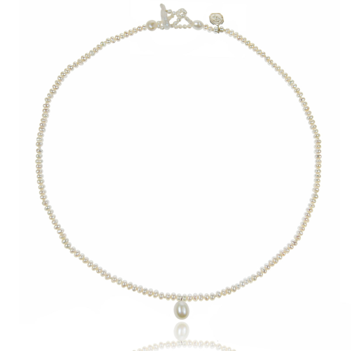 The original vintage glamour of a single strand of pearls - this elegant pearl necklace is crafted with creamy white Freshwater pearls. Wear alone or with a single strand braceletin white pearls. The versatility of this simple design knows no bounds (typifying Chrissie’s mix and match philosophy). Each pearl is hand-selected for its soft, even shape and silky lustre - complimenting all skin tones.